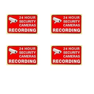 This kit contains 4 surveillance signs. Our vinyl decal of professional quality is excellent to deter theft, loitering, robbery, employee misconduct, trespassing and such with its bold white "WARNING" on the red background and a vivid picture of a security camera .The smooth plastic surface makes it weather-proof, water-proof and resistant to scratches. This vinyl decal is premium for outdoor and indoor use. It is long lasting, durable and doesn't lose its color. Whether you have a camera or not, this Decal will certainly make the would-be burglar think twice about trying to enter your home. This Decal will make sure that your security system gets noticed. Criminals will think you have security cameras even if you don't and will go away in search of an easier target.